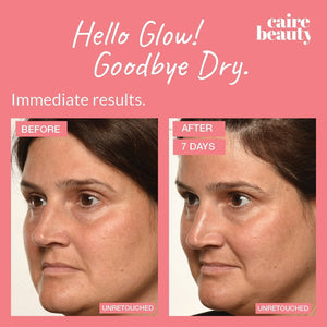 "With Caire's skincare, my skin is soft, plump and smooth (plus, no more menopausal acne). I get asked all the time by makeup artists what I’m using because my skin is so much more hydrated & younger looking."