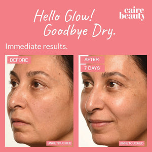 "With Caire's skincare, my skin is soft, plump and smooth (plus, no more menopausal acne). I get asked all the time by makeup artists what I’m using because my skin is so much more hydrated & younger looking."